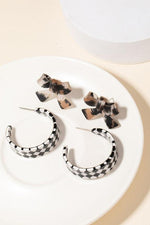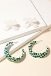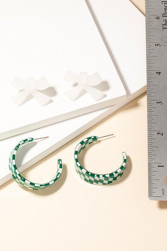 The checked resin hoops are a lightweight post earring that comes in black and white checked or green and white checked.