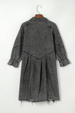 Distressed Collared Neck Flounce Sleeve Denim Dress