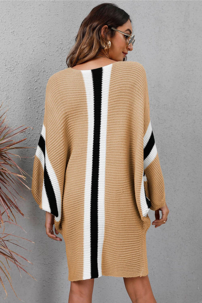 Ribbed Round Neck Long Sleeve Sweater Dress