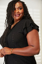 Eyelet Tie-Neck Flutter Sleeve Blouse