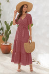 Swiss Dot Tied Surplice Short Sleeve Dress