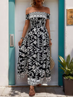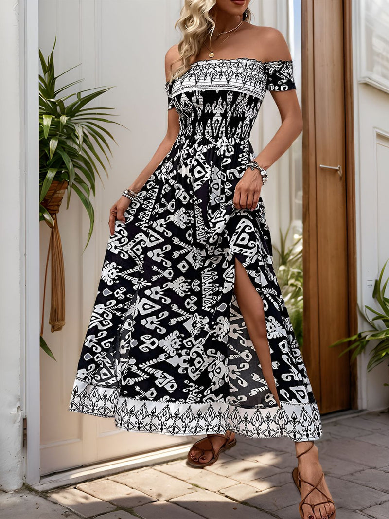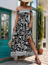 Perfee Slit Printed Off-Shoulder Dress