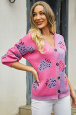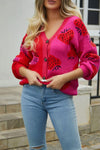 Printed V-Neck Button-Down Long Sleeve Cardigan