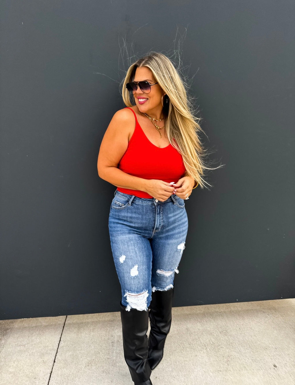 Red Ribbed Tank