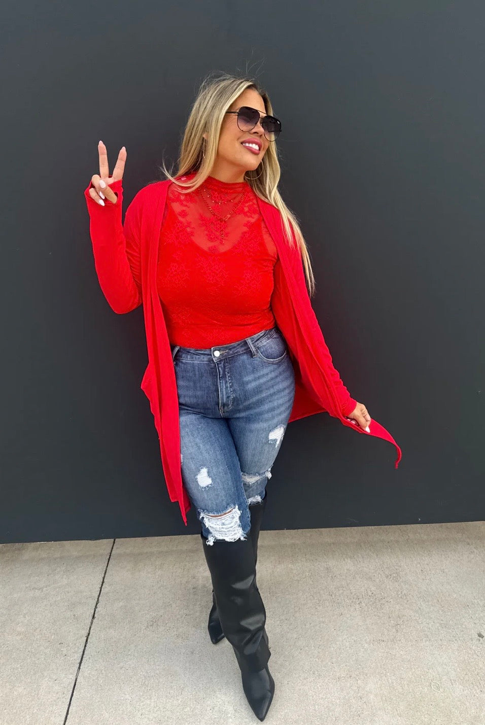 Red Lace Long Sleeve Top
