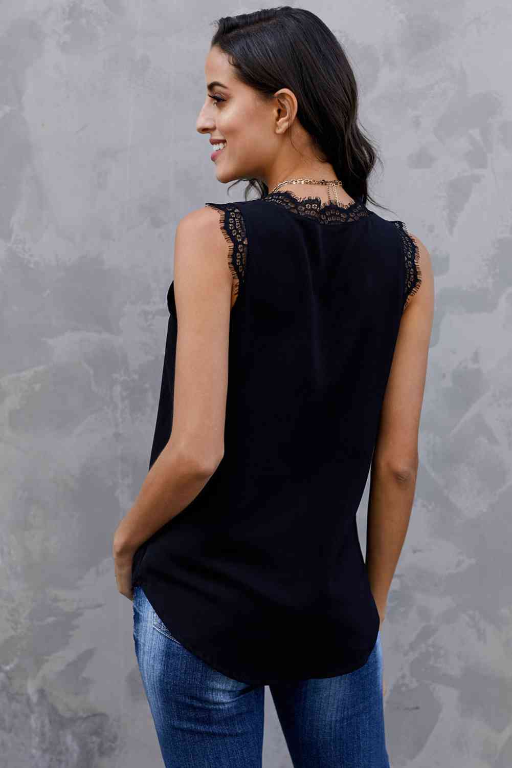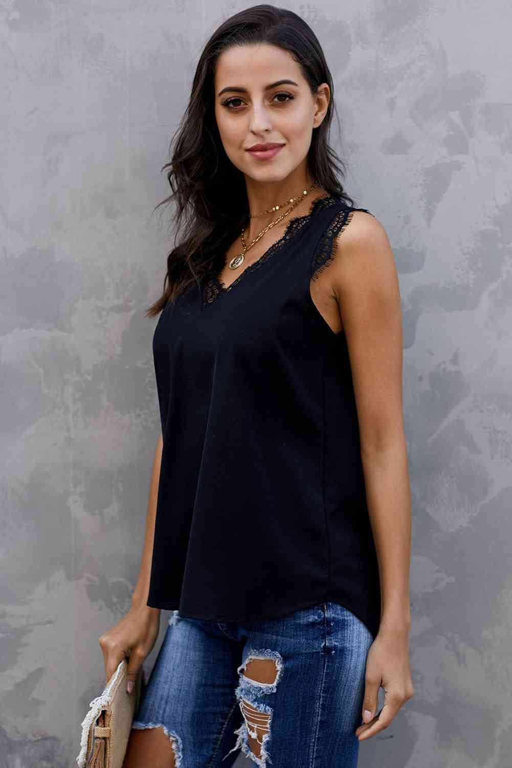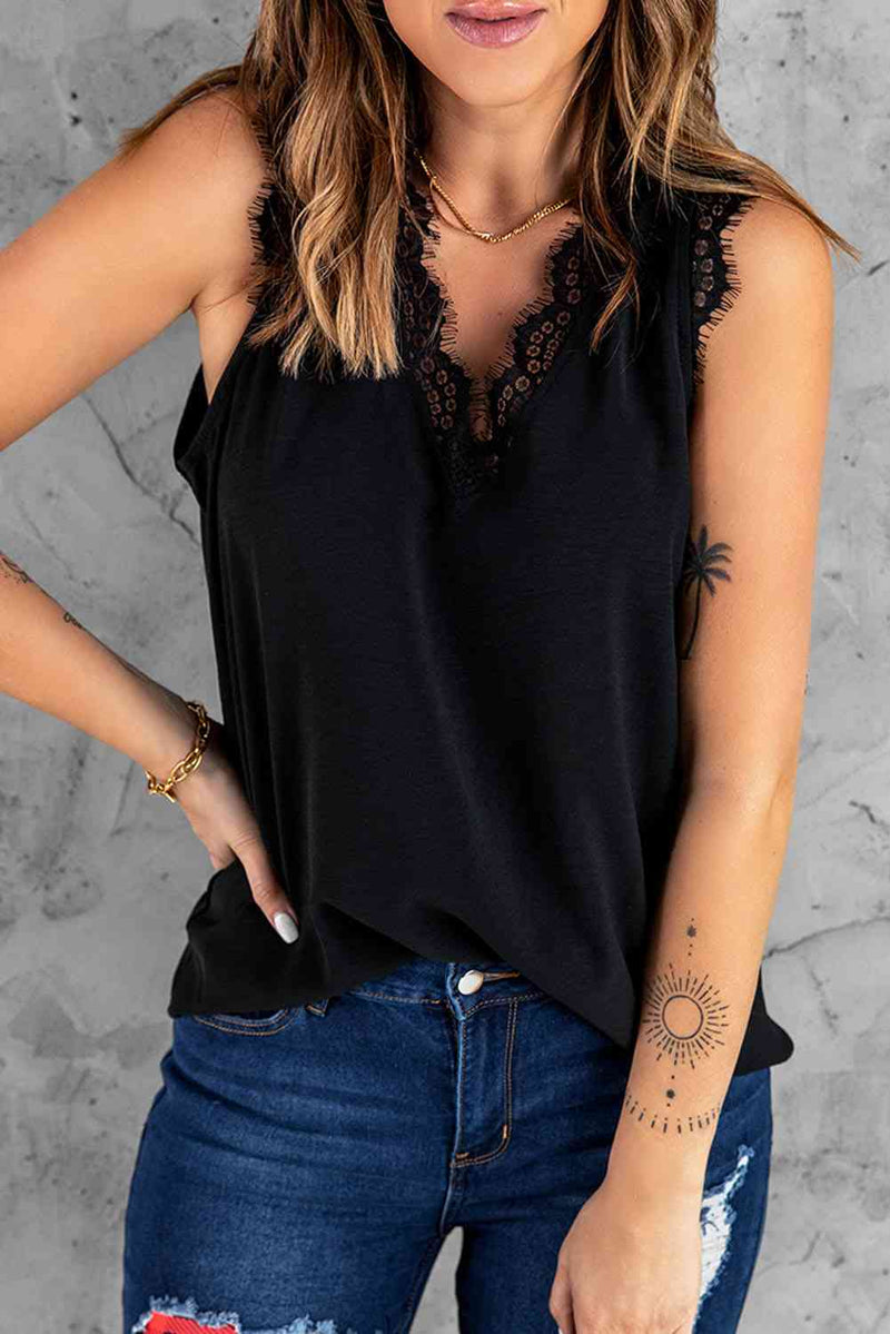 Eyelash Lace V-Neck Tank Top