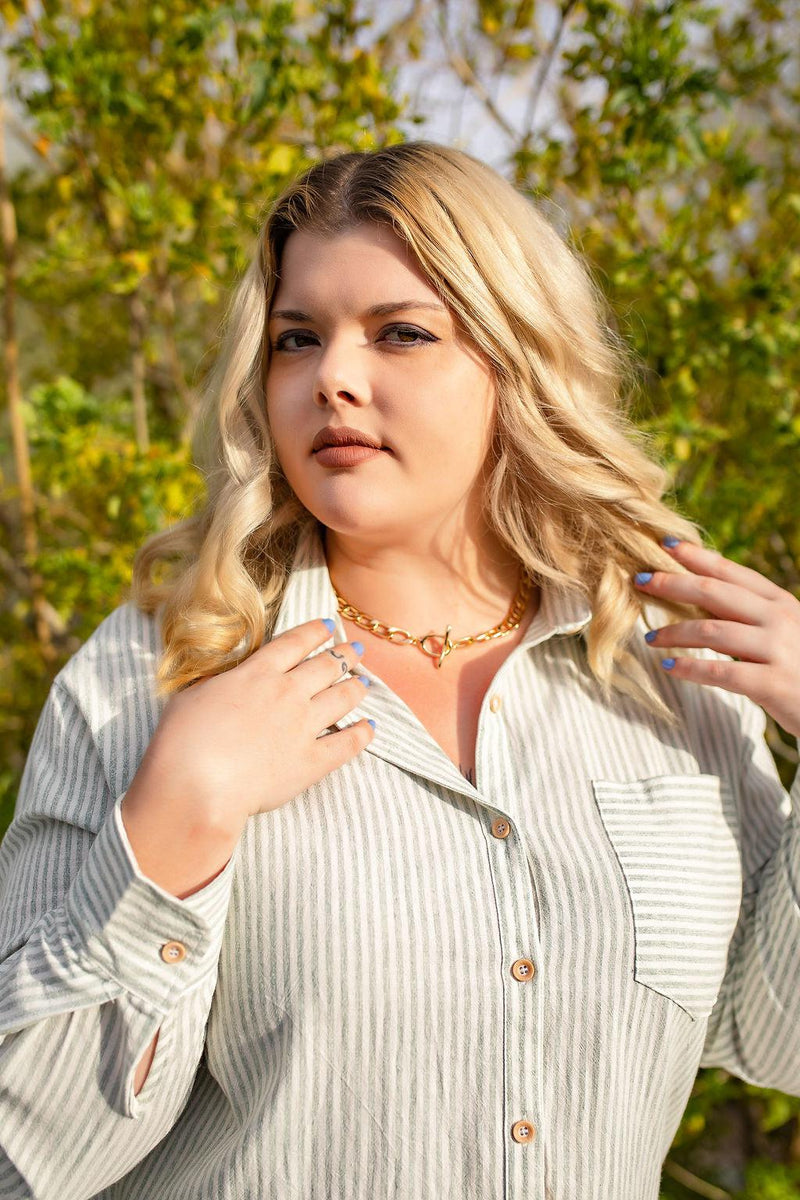This 18" Chunky Chain Gold Necklace has toggle detail for an eye-catching appeal. This high-quality necklace is a stylish addition to any outfit.
