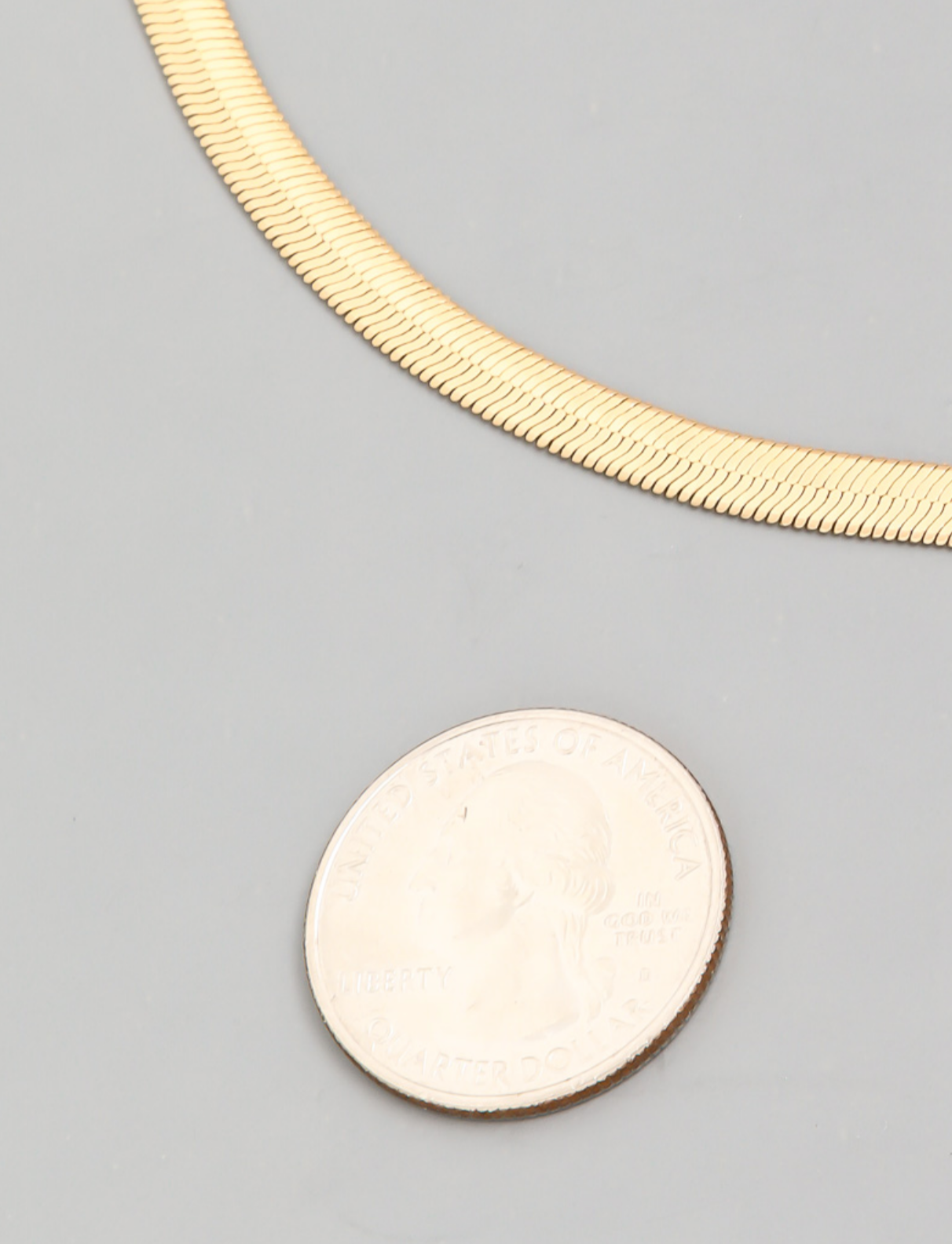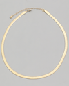 Gold herringbone chain necklace has an attached extender. This style of necklace looks good layered with another, longer necklace. This is a classic.
