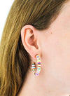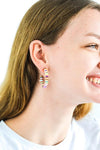 The rainbow hoops are heishi shell hoops with a post back. These earrings will go with every outfit because they have so many colors.