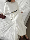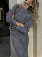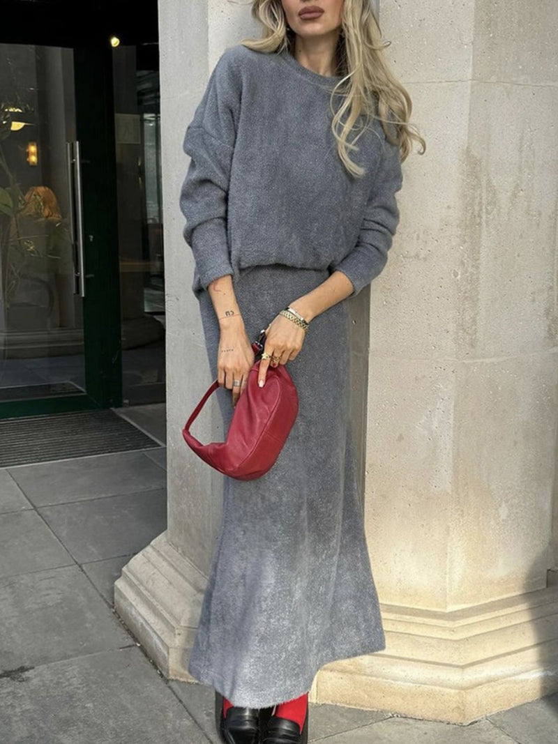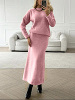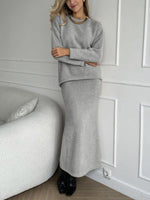 Round Neck Dropped Shoulder Top and Midi Skirt Sweater Set