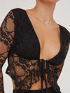 Tied Plunge Long Sleeve Lace Cropped Shirt